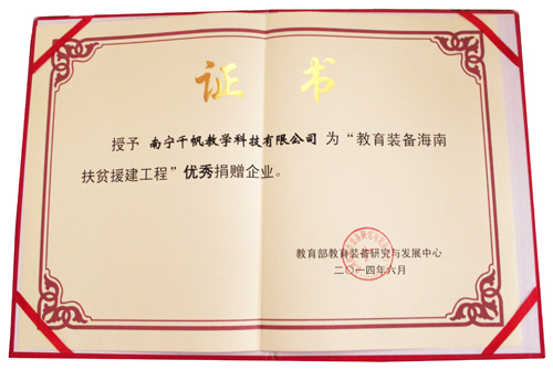 南寧千帆攜“千帆”中小學系列教學產(chǎn)品參與本次活動,并榮獲“優(yōu)秀捐贈企業(yè)”稱號。在整個活動過程中我們的產(chǎn)品及企業(yè)均得到教育裝備部門及學校老師的認可。這個榮譽給予我們更多的信心,我們將以更優(yōu)質(zhì)的產(chǎn)品及服務(wù)來回饋社會。