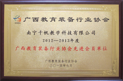 南寧千帆榮獲“2012-2013年度廣西教育裝備行業(yè)協(xié)會(huì)先進(jìn)會(huì)員單位”
