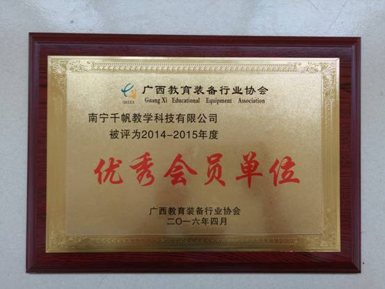 熱烈慶祝南寧千帆榮獲“2014-2015年度-廣西教育裝備行業(yè)協(xié)會(huì)優(yōu)秀會(huì)員單位”稱號(hào)