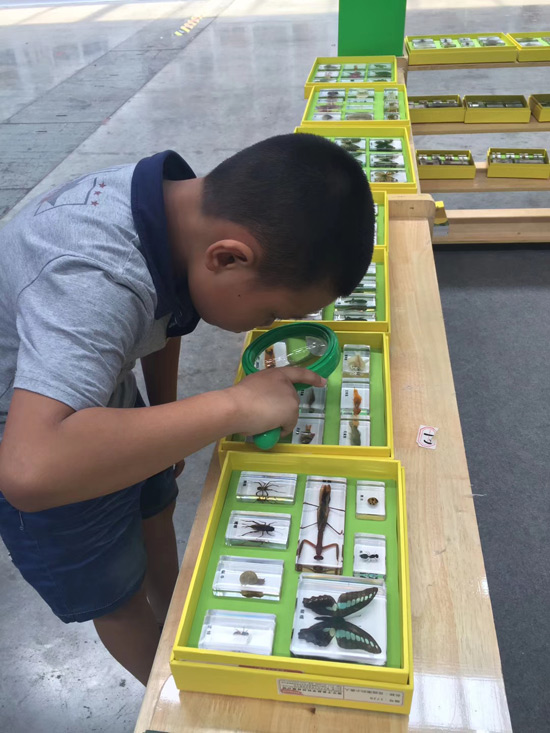 展會(huì)現(xiàn)場(chǎng)-工作人員給來訪人員介紹DIY學(xué)生實(shí)驗(yàn)制作解決方案產(chǎn)品及學(xué)生們展示DIY制作標(biāo)本